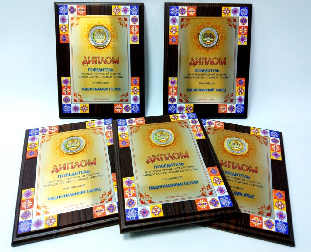 Награды для победителей в номинациях «Национальный танец», «Национальная песня», «Этноподворье» изготовила компания «Сан-Сан».