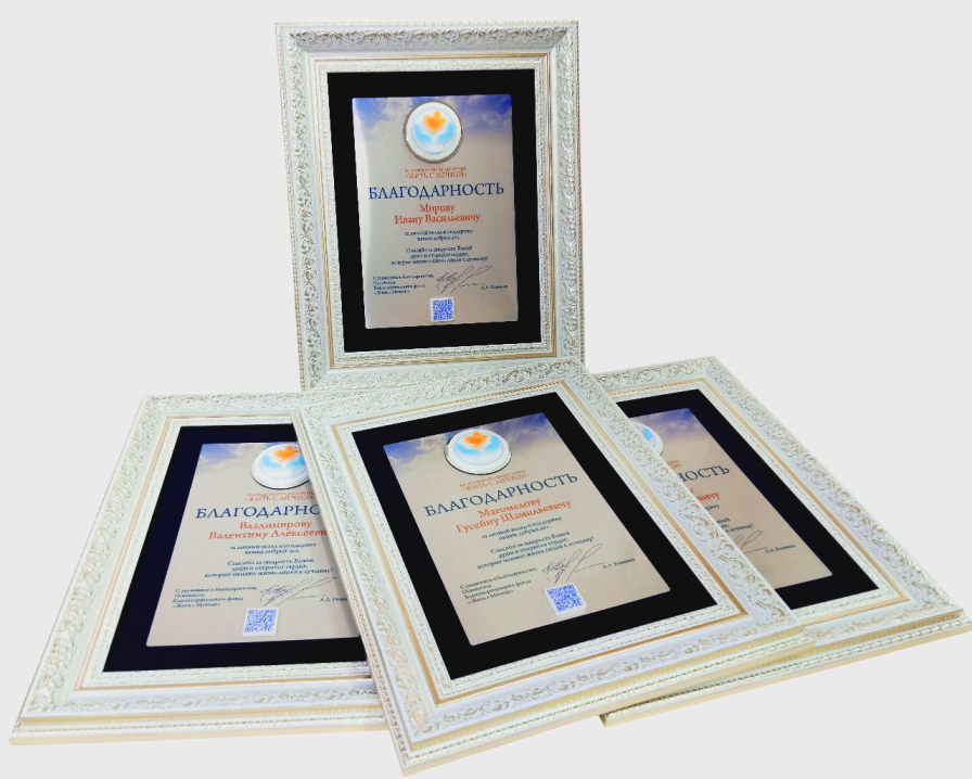 В компании «Сан-Сан» можно заказать авторское оформление благодарностей. Благодарность может быть выражена опытному и заслуженному тренеру, учителю, ветерану труда, руководителю. Красиво и необычно оформленная плакетка с благодарственным текстом подчёркивает заслуги этих замечательных людей, передаёт позитивную атмосферу самого вручения.