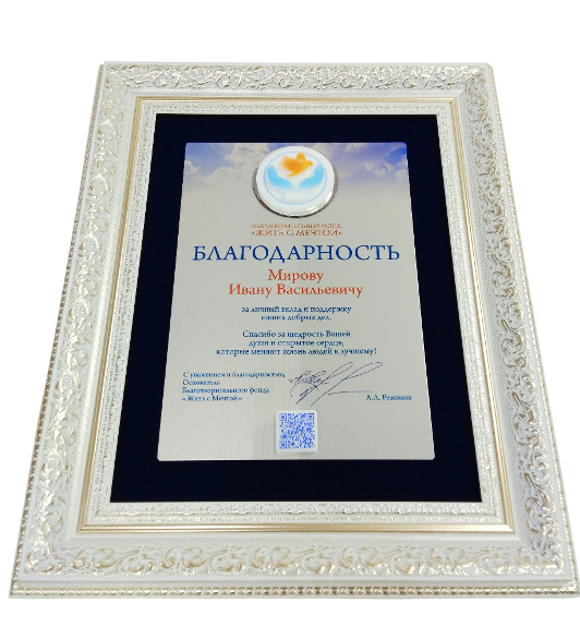 В компании «Сан-Сан» можно заказать авторское оформление благодарностей. Благодарность может быть выражена опытному и заслуженному тренеру, учителю, ветерану труда, руководителю. Красиво и необычно оформленная плакетка с благодарственным текстом подчёркивает заслуги этих замечательных людей, передаёт позитивную атмосферу самого вручения.