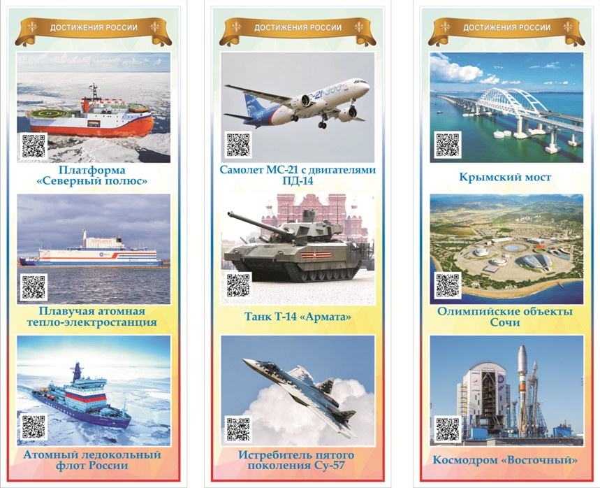 Каждый стенд – это ключ к более глубокому погружению в тему! Стенды содержат QR-коды с ссылкой перехода на проект «Россия – страна достижений» по соответствующей теме. Сканируйте и узнавайте больше о каждом достижении или личности!